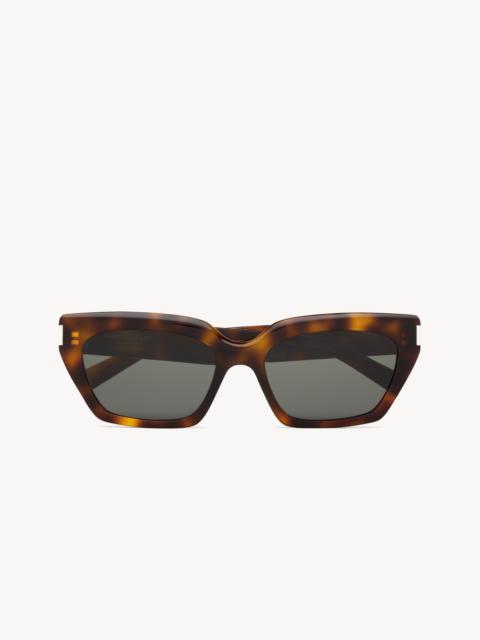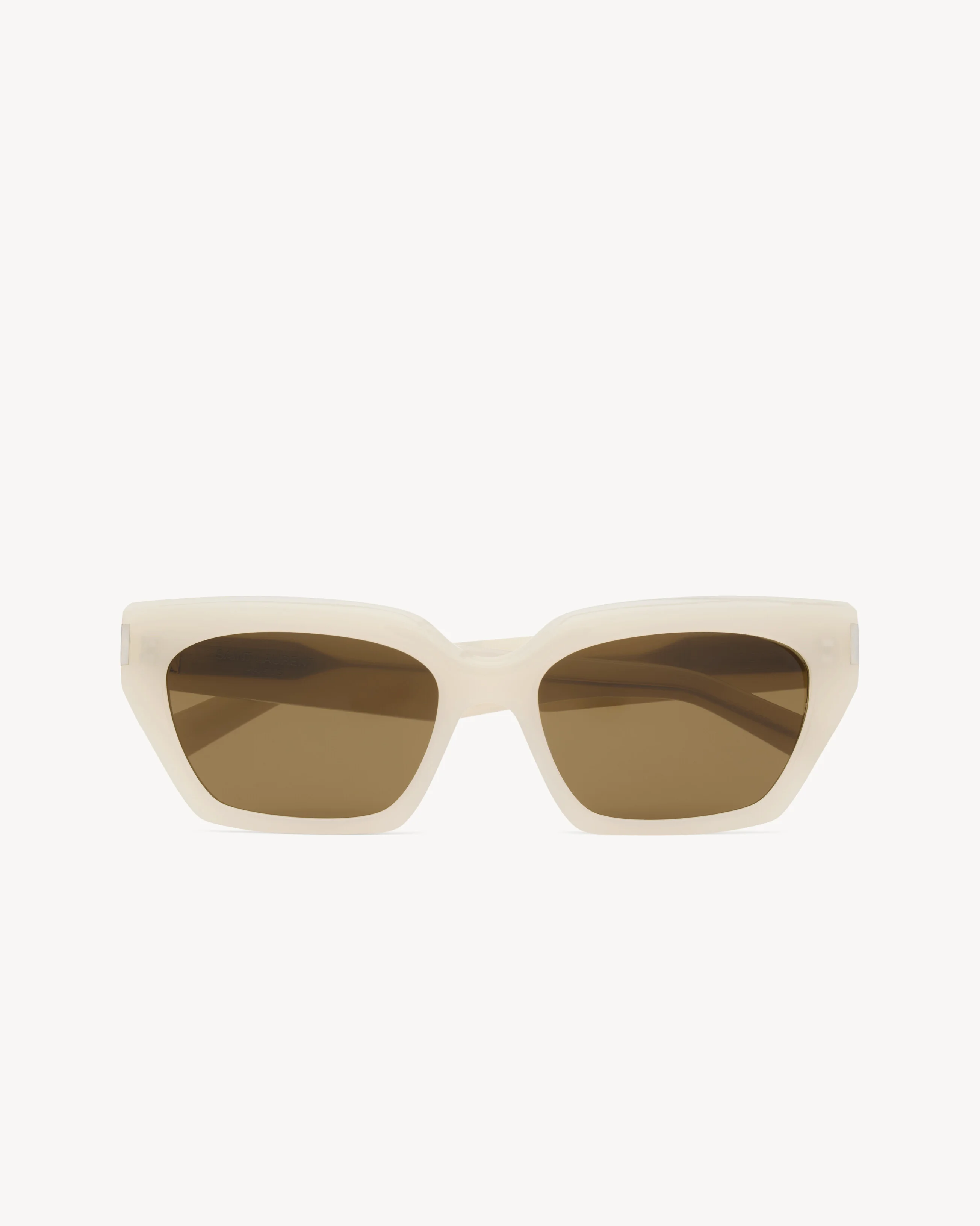 GEOMETRIC CAT-EYE SUNGLASSES WITH ACETATE FRAMES AND NYLON LENSES. - SAINT LAURENT ENGRAVED TEMPLES - 100% UVA/UVB PROTECTION - FRAMES NOT COMPATIBLE WITH PRESCRIPTION LENSES - METAL HINGE DETAIL - LENS: 55 MM / 2.2" - BRIDGE: 18 MM / 0.7" - TEMPLE: 145 MM / 5.7" - 80% ACETATE 20% NYLON - STYLE ID 843052Y99569202 - MADE IN ITALY