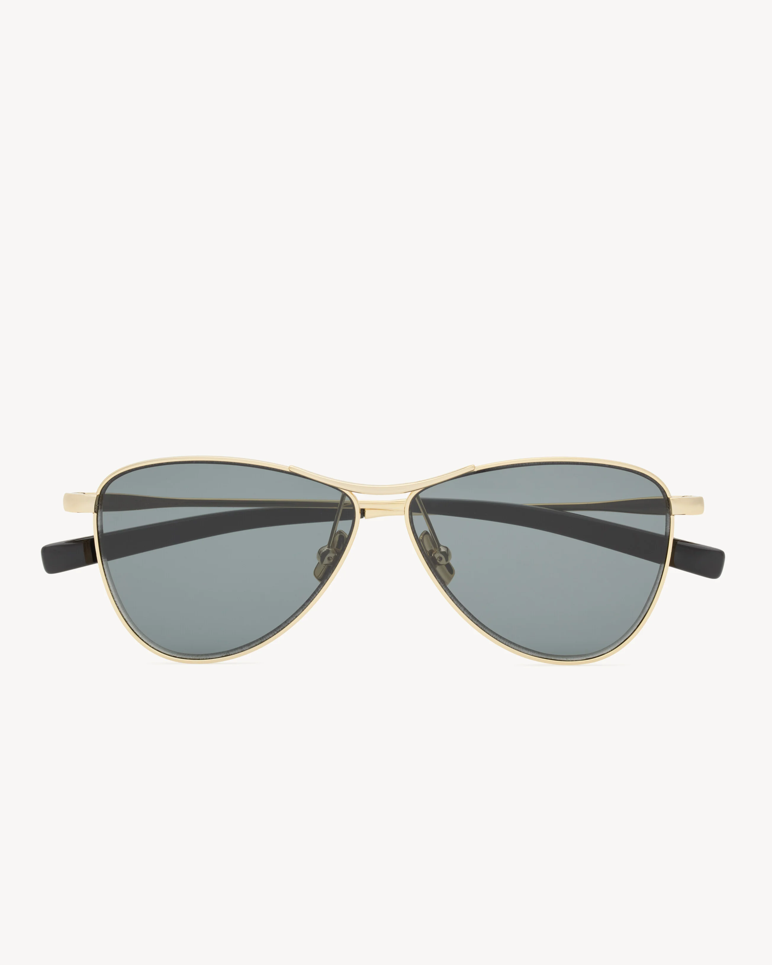 AVIATOR SUNGLASSES WITH TRIANGULAR METAL FRAMES AND NYLON LENSES. - SAINT LAURENT ENGRAVED TEMPLES - 100% UVA/UVB PROTECTION - FRAMES COMPATIBLE WITH PRESCRIPTION LENSES - METAL NOSE PADS - LENS: 55 MM / 2.2" - BRIDGE: 10 MM / 0.4" - TEMPLE: 140 MM / 5.5" - 80% METAL 20% NYLON - STYLE ID 843055Y99698033 - MADE IN ITALY