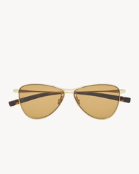 AVIATOR SUNGLASSES WITH TRIANGULAR METAL FRAMES AND NYLON LENSES. - SAINT LAURENT ENGRAVED TEMPLES - 100% UVA/UVB PROTECTION - FRAMES COMPATIBLE WITH PRESCRIPTION LENSES - METAL NOSE PADS - LENS: 55 MM / 2.2" - BRIDGE: 10 MM / 0.4" - TEMPLE: 140 MM / 5.5" - 80% METAL 20% NYLON - STYLE ID 843055Y99698013 - MADE IN ITALY
