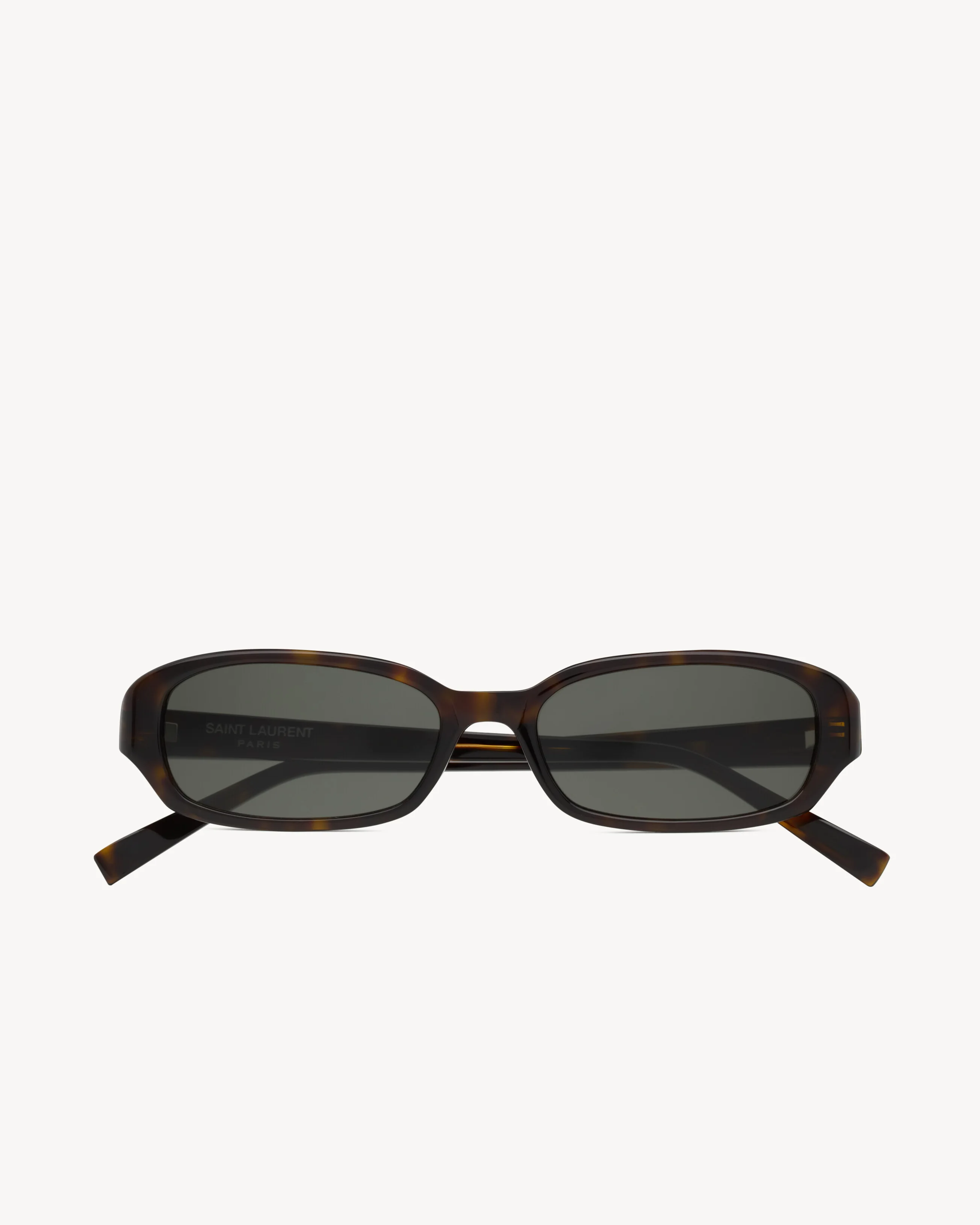 TORTOISESHELL OVAL SUNGLASSES WITH ELONGATED ACETATE FRAMES AND NYLON LENSES. - SAINT LAURENT ENGRAVED TEMPLES - 100% UVA/UVB PROTECTION - FRAMES COMPATIBLE WITH PRESCRIPTION LENSES - LENS: 52 MM / 2" - BRIDGE: 16 MM / 0.6" - TEMPLE: 140 MM / 5.5" - ACETATE, NYLON - STYLE ID 862864Y99562300 - MADE IN ITALY