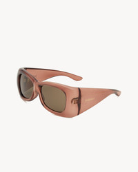 OVERSIZED PILLOWED SUNGLASSES WITH TRANSLUCENT INJECTION FRAMES AND NYLON LENSES, FEATURING WIDE TEMPLES. - SAINT LAURENT INSCRIBED TEMPLES - 100% UVA/UVB PROTECTION - FRAMES NOT COMPATIBLE WITH PRESCRIPTION LENSES - LENS: 61 MM / 2.4" - BRIDGE: 18 MM / 0.7" - TEMPLE: 135 MM / 5.3" - INJECTION, NYLON - STYLE ID 862885Y99586410 - MADE IN JAPAN