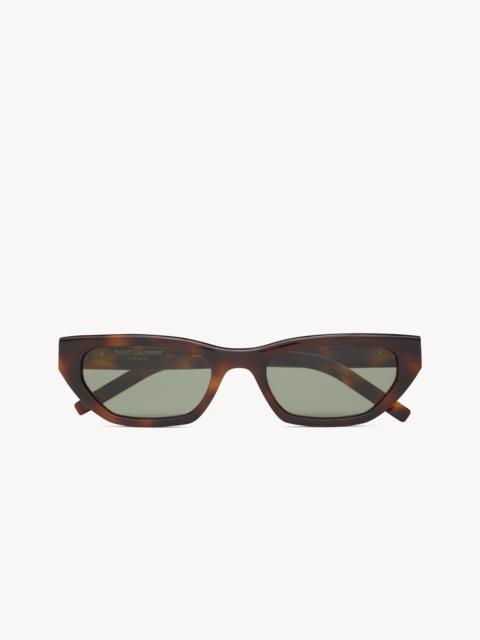 CAT-EYE SUNGLASSES WITH NARROW ELONGATED ACETATE FRAMES AND NYLON LENSES. - CASSANDRE HINGE AT THE TEMPLES - 100% UVA/UVB PROTECTION - FRAMES NOT COMPATIBLE WITH CORRECTIVE LENSES - DIMENSIONS: LENS 54 MM, BRIDGE 20 MM, TEMPLE 140 MM - RECYCLED ACETATE, BIO NYLON - STYLE ID 758474Y99562301 - MADE IN ITALY