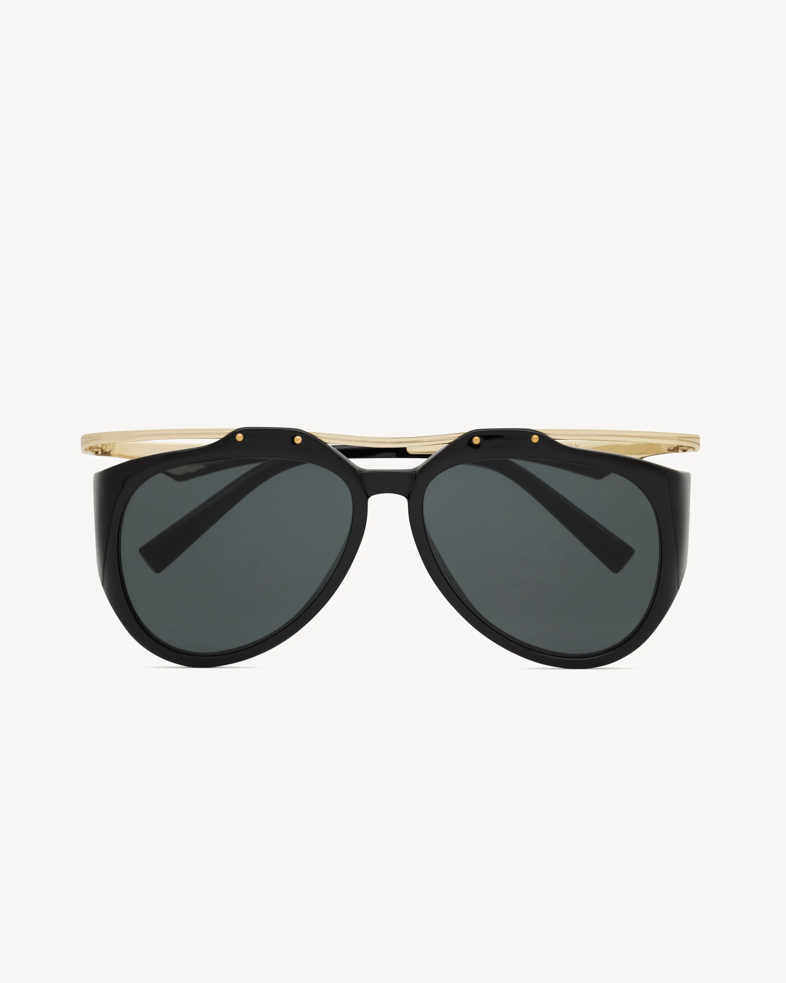 AVIATOR SUNGLASSES WITH FLOATING INJECTION FRAMES, A METAL TOP BAR, AND NYLON LENSES. - METAL CASSANDRE TEMPLES - 100% UVA/UVB PROTECTION - FRAMES NOT COMPATIBLE WITH PRESCRIPTION LENSES - DIMENSIONS: LENS: 55 MM / 2.2"; BRIDGE: 14 MM / 0.6"; TEMPLE: 135 MM / 5.3" - ACETATE, METAL, NYLON - STYLE ID 791905Y99631017 - MADE IN JAPAN