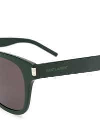 SL51BSLIM rectangular-frame sunglasses When in doubt, wear sunglasses. These dark green rectangular-frame sunglasses from Saint Laurent Eyewear have black tinted lenses that will help you hide whatever you need to. Featuring a hinged structure, a logo at the temple, a brand logo on internal arm and straight arms with curved tips. This item comes with a protective case. Made in Italy Composition Acetate 100% SIZE & FIT Measurement Arm Length 5.9 in(15 cm) Bridge Width 0.86 in(2.2 cm) Lens Diameter 1.96 in(5 cm) Total Width 5.7 in(14.5 cm)