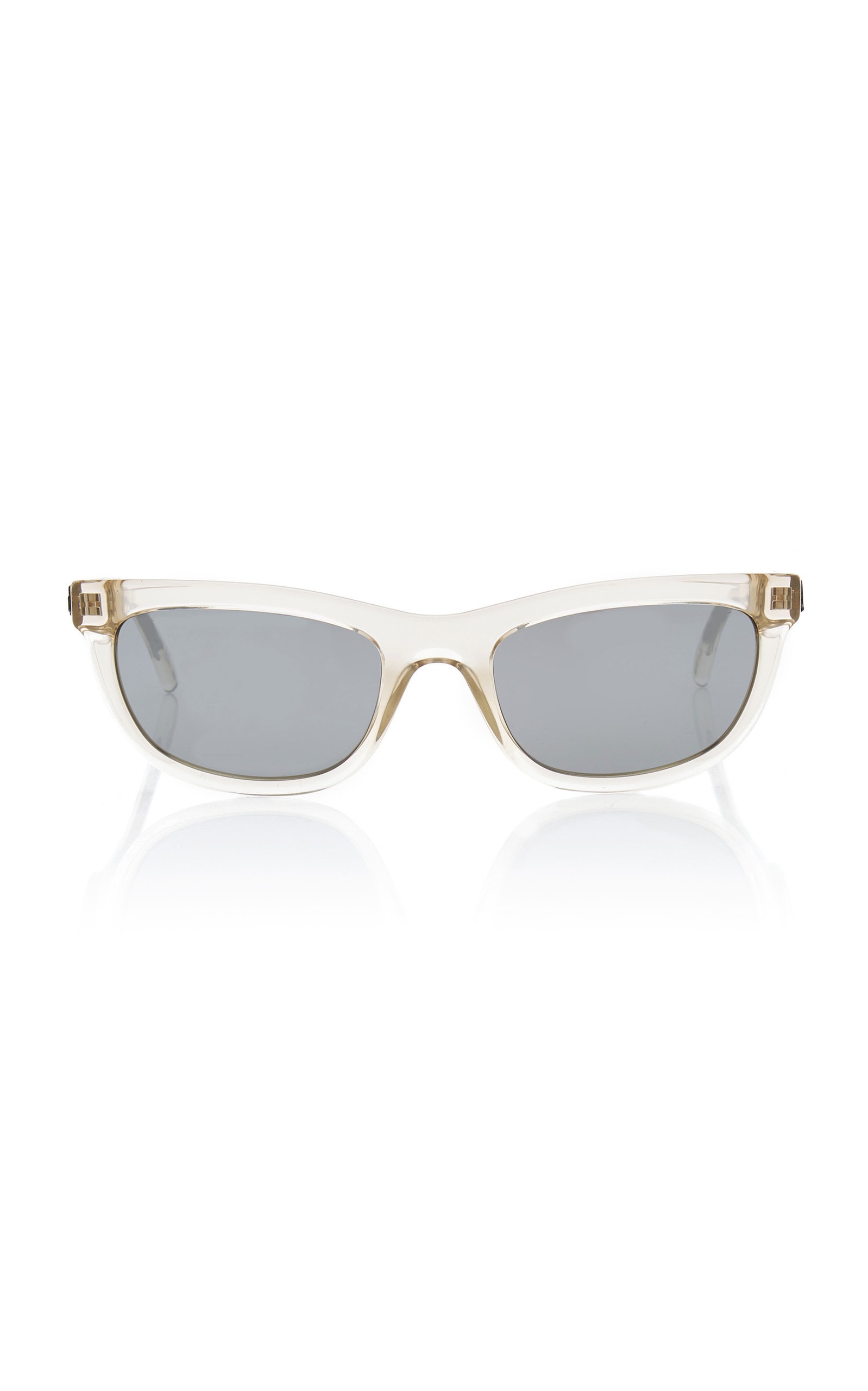 These sunglasses have a timeless feel seen through Saint Laurent's Parisian cool lens. They've been made in Italy from transparent acetate into sleek square frames that work best with round and oval face shapes. Store them in the accompanying case to keep them scuff-free. PRODUCT DETAILS - Composition: 100% acetate - 100% UVA/UVB protection - Made in Italy SIZE & FIT - This item measures 55-20-145