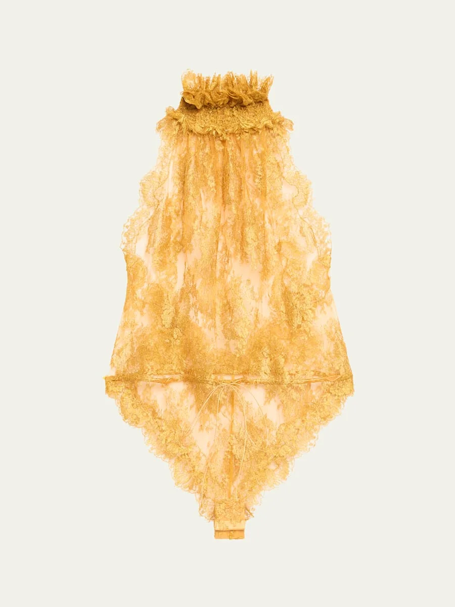 Sleeveless High-Neck Lace Bodysuit