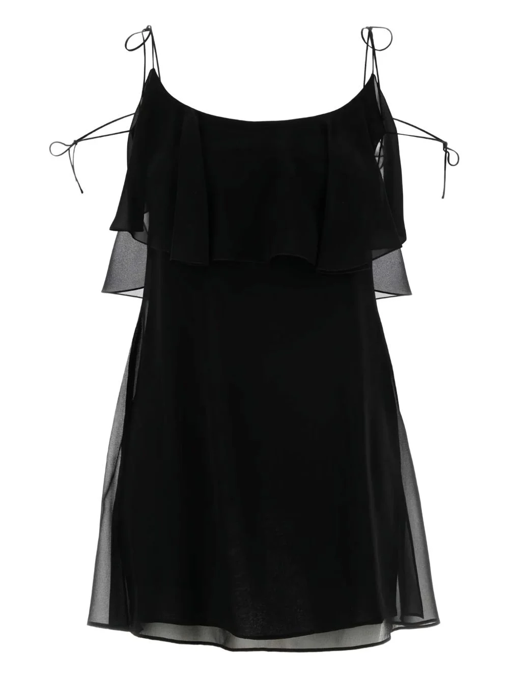 ruffle-detail dress Highlights - Black - Spaghetti straps - Layered ruffle detailing - Adjustable tie fastenings - Sheer overlay - Lightweight design Made in Italy Composition Outer: Silk 100% Lining: Silk 100% Washing instructions Read Manufacturer Guidelines