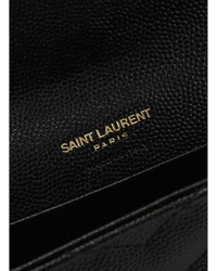 Details - Pebbled leather exterior and lining - Made in Italy - Fold-over flap top with snap button closure - One main compartment - Four interior card slots - Back flat pocket - Aged bronze-tone metal YSL cassandre on front - Measures approx 5"W x 3.5"H x 1"D - This item is not available to ship to Indonesia - Our Style No. SLAU-WY2631 - Manufacturer Style No. 414404-BOW01-1000