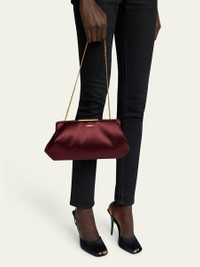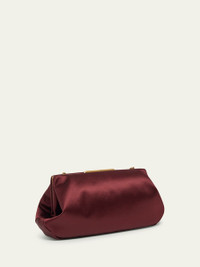Saint Laurent clutch bag in satin silk and viscose Detachable chain shoulder strap Can be worn as a clutch or shoulder bag Structured kisslock closure Golden hardware Approx. 5.9"H x 8.9"W x 3.5"D Made in Italy