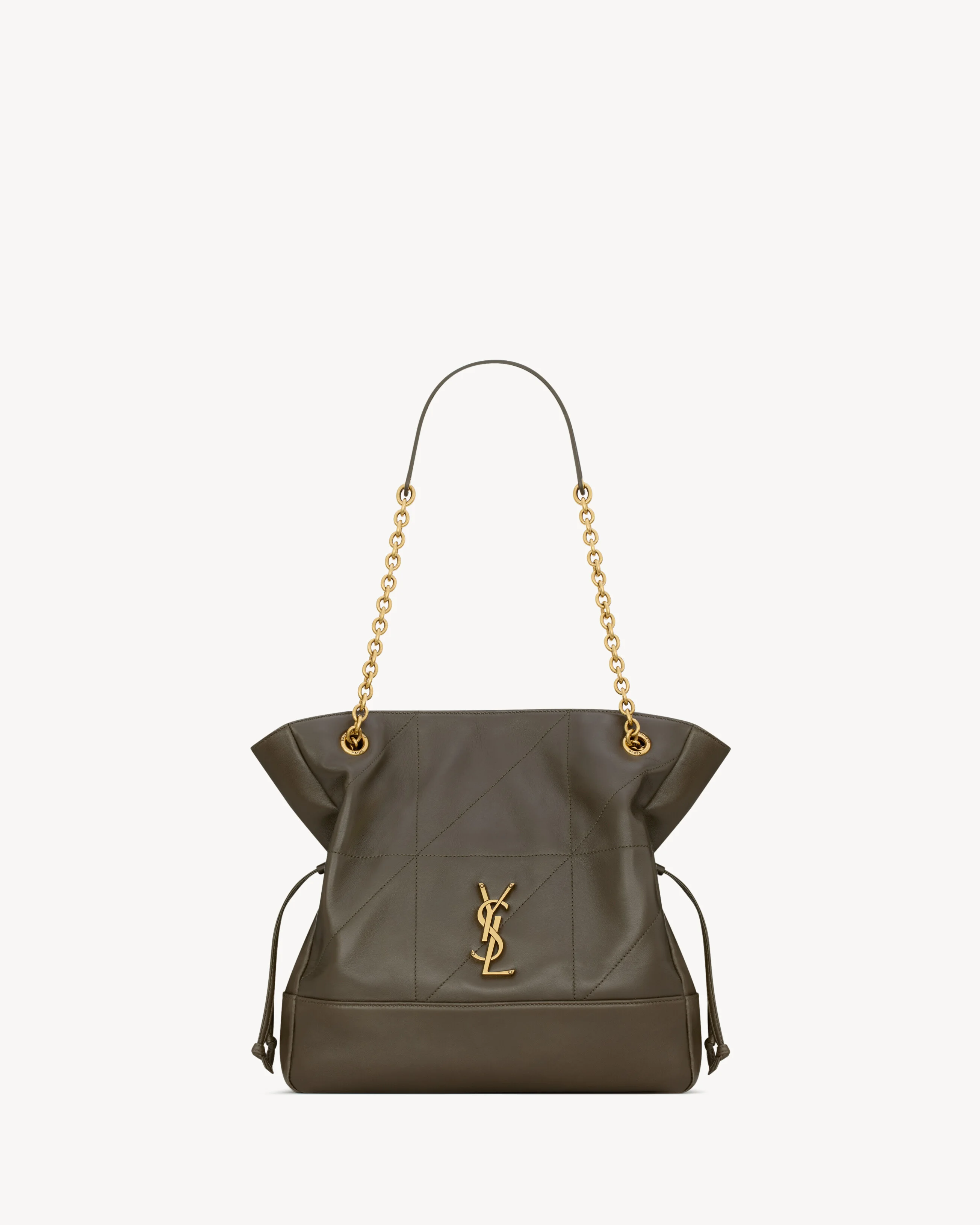 THE SMALL TOTE VERSION OF THE JAMIE IN SUPPLE NAPPA, DECORATED WITH THE CASSANDRE AND CARRE RIVE GAUCHE TOPSTITCHING. THIS LIGHTWEIGHT BAG FEATURES A REMOVABLE ZIP POUCH AND A CHAIN STRAP FOR SHOULDER CARRY. DRAWSTRING TIES ALLOW THE SIDES TO BE CINCHED OR EXPANDED TO CREATE DIFFERENT SILHOUETTES. - COTTON LINING - BRONZE-TONE HARDWARE - MAGNETIC CLOSURE - DIMENSIONS: 29 X 28 X 8 CM / 11.4" X 11" X 3.1" - STRAP DROP: 26 CM / 10.2" - LAMBSKIN, METAL - STYLE ID 833948AAB323212 - MADE IN ITALY