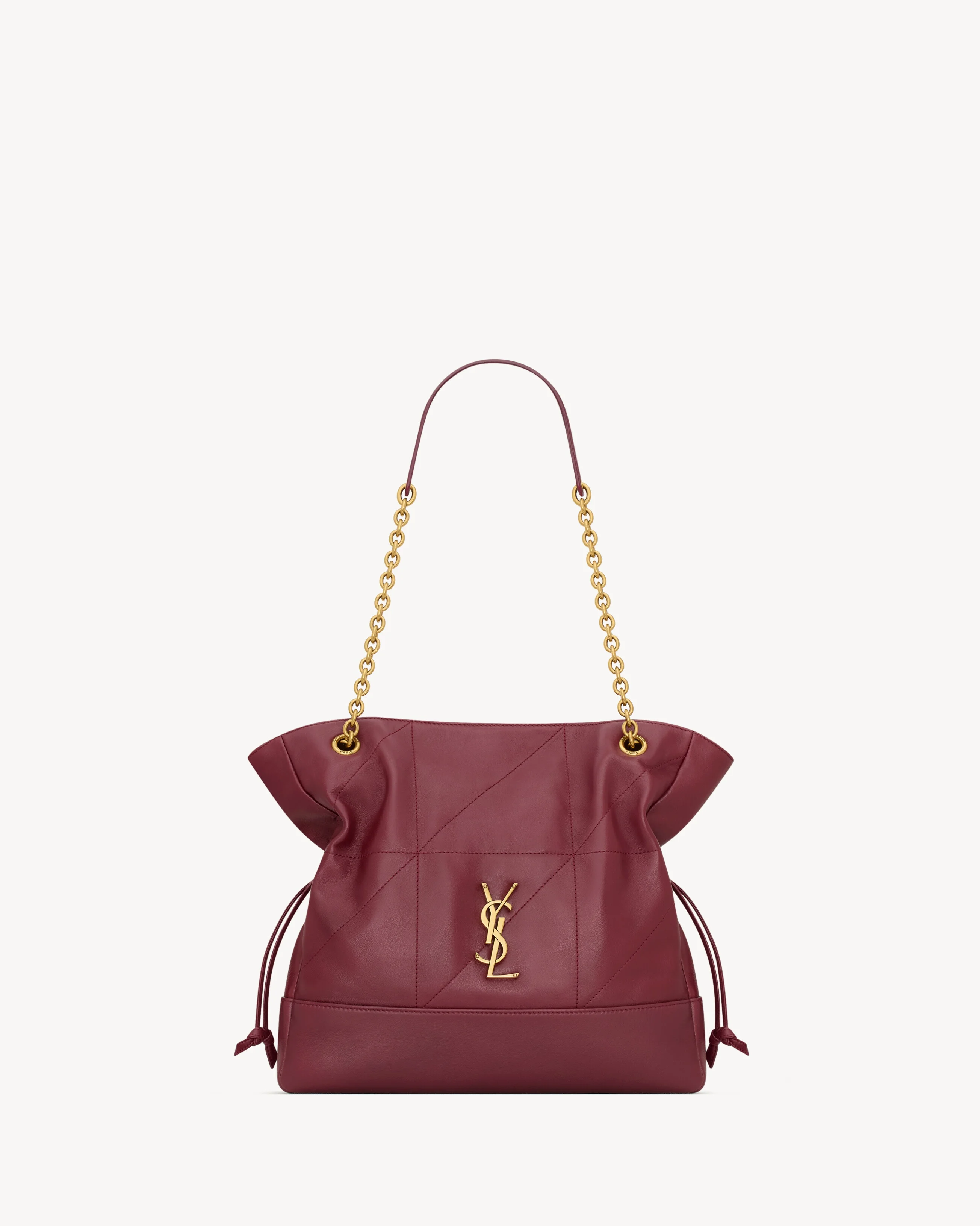 THE SMALL TOTE VERSION OF THE JAMIE IN SUPPLE NAPPA, DECORATED WITH THE CASSANDRE AND CARRE RIVE GAUCHE TOPSTITCHING. THIS LIGHTWEIGHT BAG FEATURES A REMOVABLE ZIP POUCH AND A CHAIN STRAP FOR SHOULDER CARRY. DRAWSTRING TIES ALLOW THE SIDES TO BE CINCHED OR EXPANDED TO CREATE DIFFERENT SILHOUETTES. - GROSGRAIN LINING - BRONZE-TONE HARDWARE - MAGNETIC CLOSURE - DIMENSIONS: 29 X 28 X 8 CM / 11.4" X 11" X 3.1" - STRAP DROP: 26 CM / 10.2" - 90% LAMBSKIN 10% METAL - STYLE ID 833948AAB326592 - MADE IN ITALY
