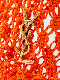 SAINT LAURENT's bag is woven from cord in an airy, open construction reminiscent of fishnet styles. It's embellished with a hammered 'YSL' logo plaque and holds enough space inside for your phone and sunglasses case. Details & Care - Orange cord - Top handles - Unlined - Open top