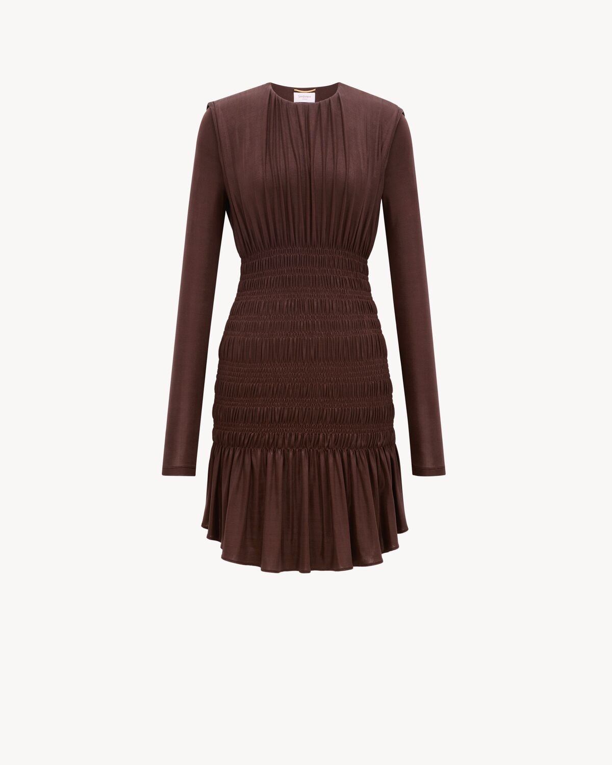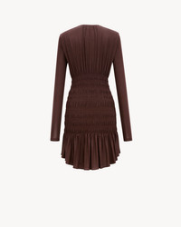 LONG-SLEEVE GATHERED MINI DRESS MADE WITH CERTIFIED VISCOSE, FEATURING SMOCKED STRIPES AND A RUFFLED DROP-WAIST SKIRT. - CERTIFIED VISCOSE - VISCOSE AND ELASTANE LINING - ROUND NECK - 95% VISCOSE, 5% ELASTAN - STYLE ID 821513Y37XF6164 - MADE IN FRANCE