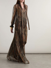 Smocked metallic paisley-print silk-blend chiffon maxi dress Multi