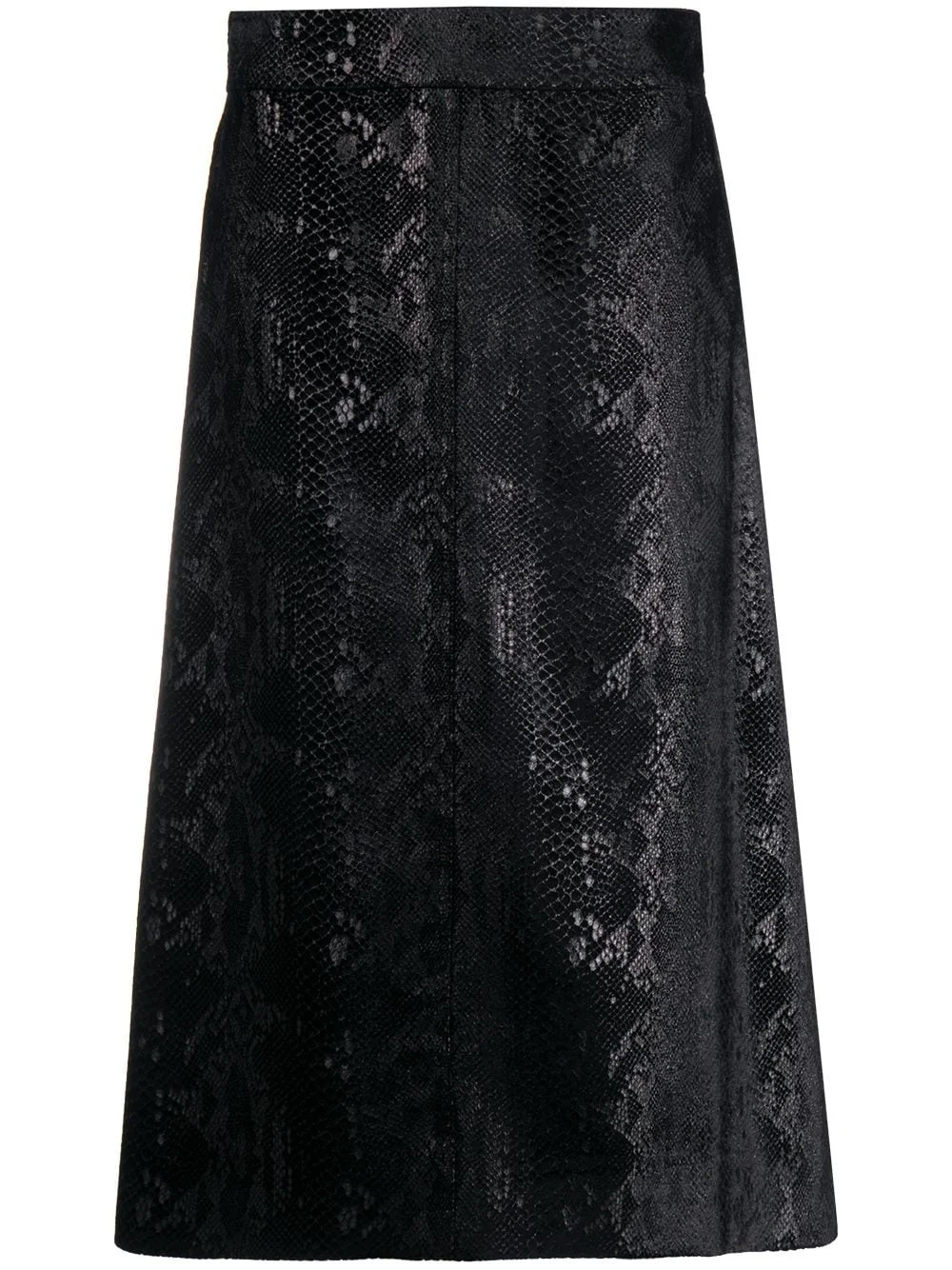 snakeskin-effect midi skirt Achieving sophisticated style is easier than you think. With a subtle snakeskin effect, this midi skirt from Saint Laurent will add refinement to any look. If only everything in life was so straightforward. Highlights - Black - Snakeskin effect - High waist - A-line - Mid-length Made in Italy Composition Outer: Viscose 80%, Silk 20% Lining: Silk 100% SIZE & FIT Model measurements Height 5 ft 10 in(1.78 m) Bust/Chest 33.07 in(84 cm) Hips 33.07 in(84 cm) Waist 24.4 in(62 cm) Measurement HIPS 40.55 in(103 cm) LENGTH 29.13 in(74 cm) WAIST 31.1 in(79 cm) FittingInformation This piece fits true to size. We recommend you get your regular size Designed to be fitted at the waist and hips, loose over the leg Made with a mid-weight non-stretch fabric Washing instructions Dry Clean Only