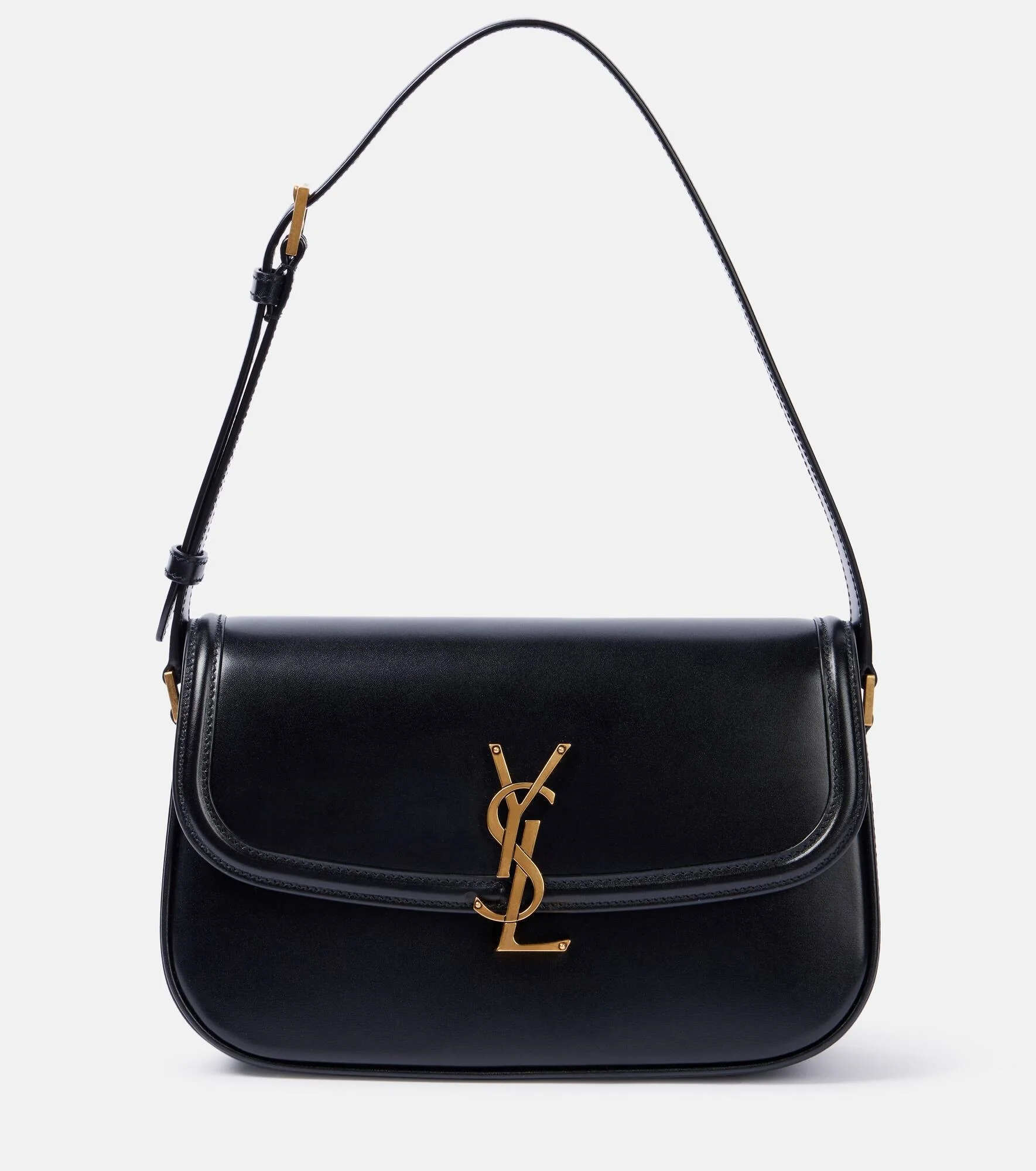 Crafted from supple leather, the Solferino Small shoulder bag from Saint Laurent features a structured silhouette, complemented by an adjustable strap for effortless carry. The design is completed with the brand's gold-toned logo and secure turn-lock closure. Product Details - Material: leather - Lining: leather - Made in Italy - Designer color name: Nero - Item color: black - Contains non-textile parts of animal origin - Closure: push-lock fastening - Adjustable shoulder strap - Hardware color: gold - Item number: P01040415 Size & Fit - Height 15cm-6" - Width 24cm-9.5" - Depth 8cm-3" - Min. length shoulder strap 49cm-19.5" - Max. length shoulder strap 59cm-23"