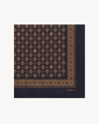 SQUARE SCARF DECORATED WITH A CASSANDRE MEDALLION MOTIF, FEATURING THE SAINT LAURENT SIGNATURE AT THE CORNER. MADE WITH CERTIFIED SILK. - CERTIFIED SILK - SAINT LAURENT SIGNATURE AT THE CORNER - SMOOTH TRIM - 90 X 90 CM / 35.4" X 35.4" - SILK - STYLE ID 8252393Y0014179 - MADE IN ITALY