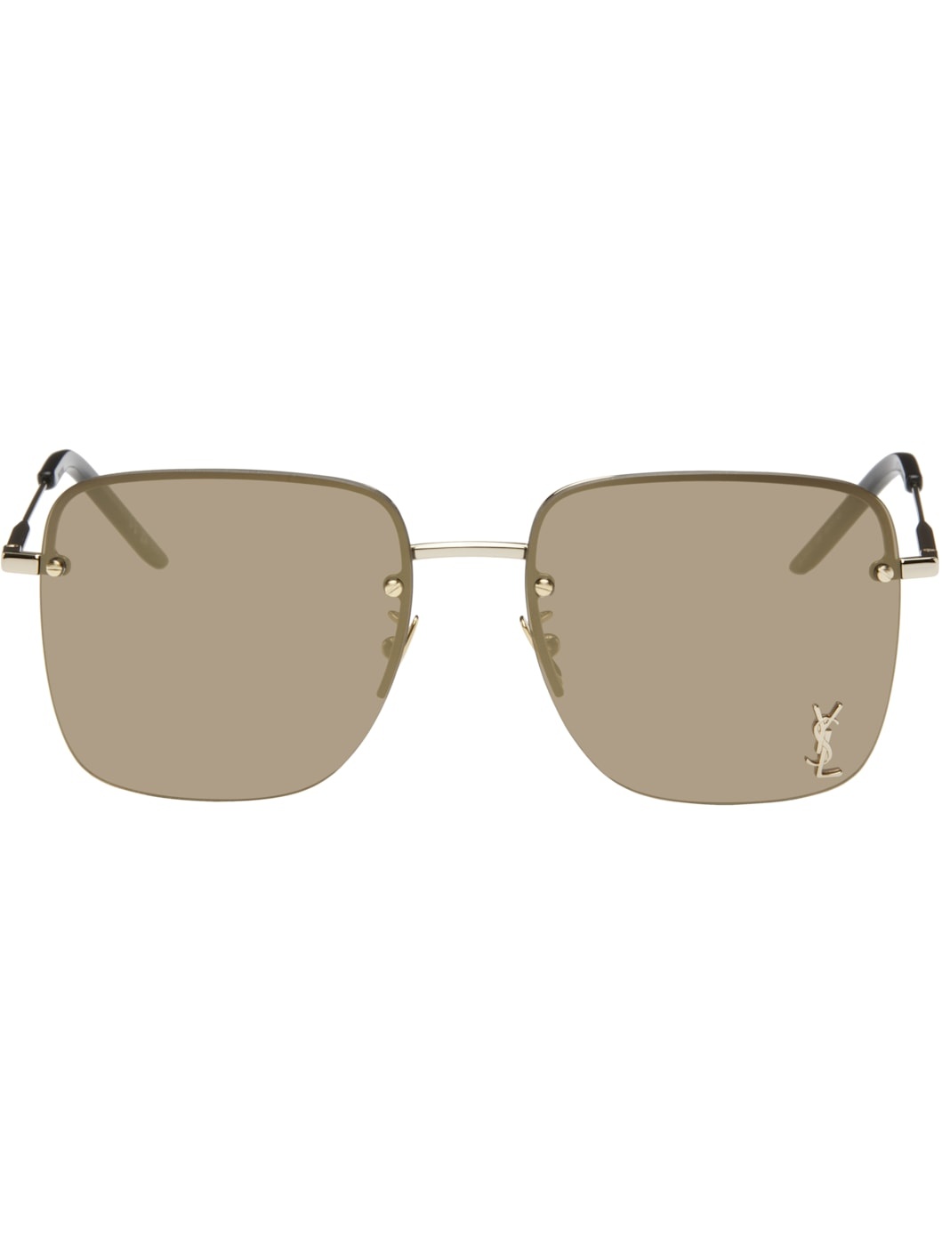 Square rimless metal-frame sunglasses in gold tone. · Brown lenses · 100% UVA/UVB protection, Category 3 · Logo hardware at lens · Adjustable metal nose pads · Acetate temple tips · Includes leather case · Size: 58.17 145 Supplier color: Gold
