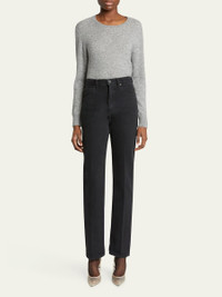 Saint Laurent denim pants Full length High rise Straight legs Five-pocket style Button/zip fly; belt loops Cotton Made in Italy Proposition 65 warning for California residents Model is 5'10"/177cm. Online Inquiries: BGS21_B9FMQ| Store Inquiries: #4862335