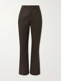EDITORS'NOTES For SAINT LAURENT's Spring '24 collection, Creative Director Anthony Vaccarello pays homage to pioneering aviators Amelia Earhart and Adrienne Bolland. These pants are made from cotton-twill and have straight legs with elongating pressed creases. Wear yours with the coordinating shirt to emulate the runway styling. SIZE & FIT - Fits true to size, take your normal size - High-rise, cut for a straight-leg fit - Mid-weight, non-stretchy fabric - Model is 180cm/ 5’11” and is wearing a size 26 DETAILS & CARE - Brown cotton-twill - Partially concealed button fastenings along front - 100% cotton; buttons: 100% horn (Buffalo) - Dry clean