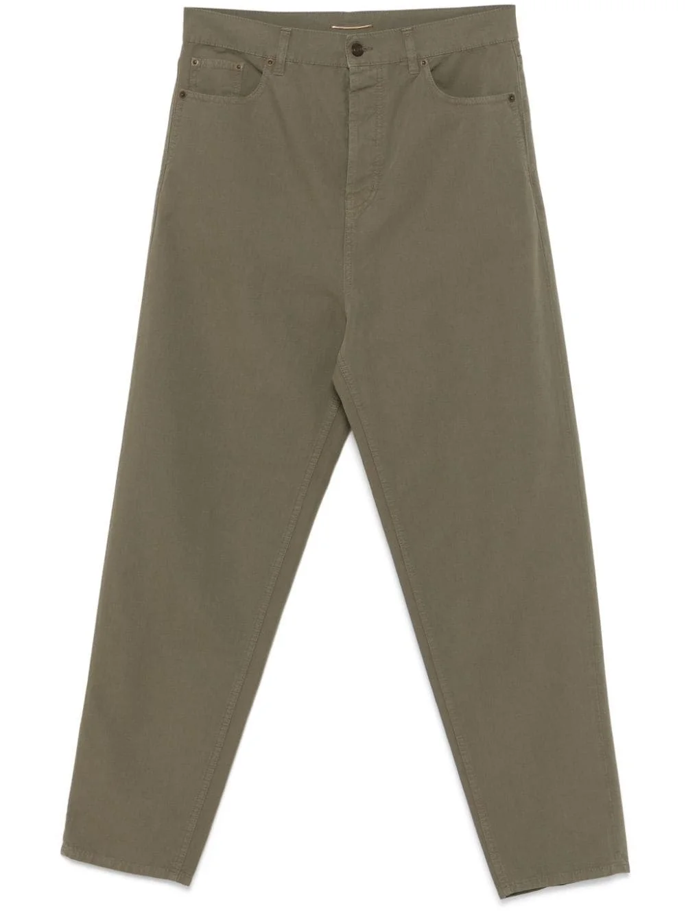 tapered jeans Highlights - Khaki - Cotton - Tapered leg - Button fly fastening - Belt loops - Classic five pockets Made in Italy Composition Calf Leather 100%, Cotton 100% SIZE & FIT Model measurements Height 5 ft 9 in(1.75 m) Bust/Chest 31.88 in(81 cm) Hips 34.64 in(88 cm) Waist 24.01 in(61 cm) FittingInformation This piece fits very large – take two sizes down Measurement FRONT RISE 14.48 in(36.8 cm) INSIDE LEG 30.51 in(77.5 cm) BACK RISE 15.98 in(40.6 cm) HIPS 39.01 in(99.1 cm) Hem Width 14.01 in(35.6 cm) WAIST 32.99 in(83.8 cm)