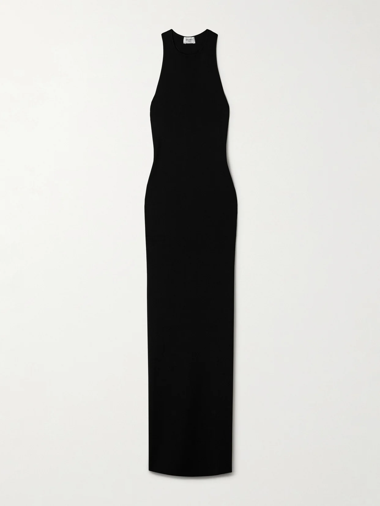 SAINT LAURENT's maxi dress has been made in Italy from stretch-knit that hugs your frame, beautifully accentuating each curve. It has a chic, minimal design with a high neckline and back split so you can move with ease. There's no limit to the amount of ways you can style it.