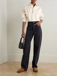 SAINT LAURENT's shirt is a timeless classic you'll be able to incorporate into countless outfits throughout the year. Made from cotton-pique in a neutral striped pattern, it has a slightly loose shape with dropped shoulder seams and a curved hem. The 'Cassandre' logo is subtly embroidered at the chest. Details & Care - Beige and white cotton-pique - Button fastenings through front - 100% cotton - Dry clean