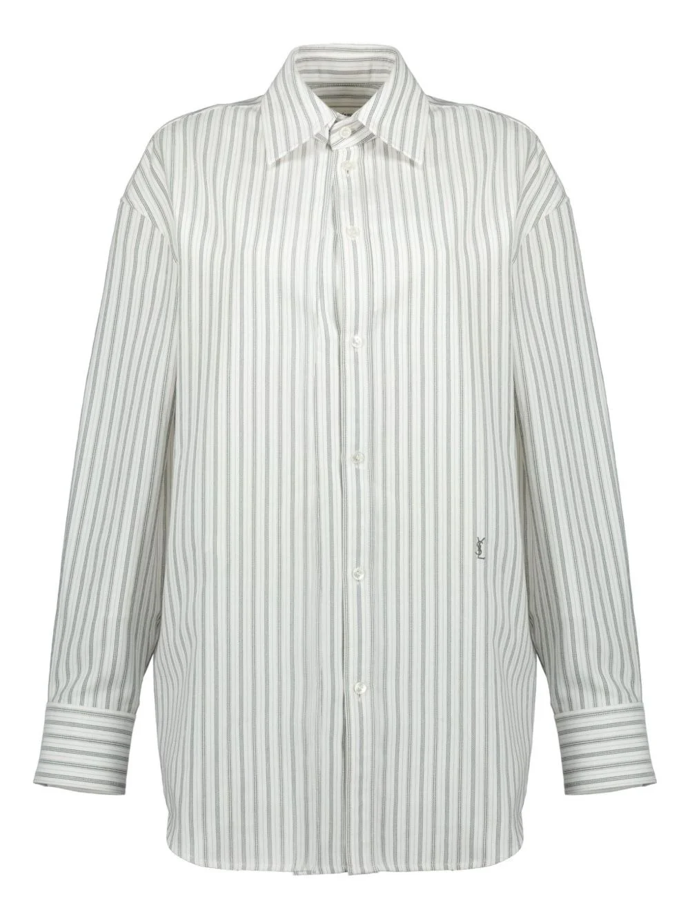 striped cotton shirt Highlights - White and grey - Button fastening - Long sleeves - Buttoned cuffs - Embroidered logo Made in Italy Composition Cotton 100% Washing instructions Read Manufacturer Guidelines