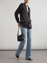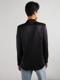 SAINT LAURENT's shirt is modeled on classic pajama styles. Equally comfy and chic, it's cut from pinstriped silk-satin that drapes over your frame and has notch lapels. Roll the cuffs for the coolest take. Size & Fit - Fits true to size, take your normal size - Designed for a slightly loose fit - Lightweight, fluid, non-stretchy fabric - Model is 177cm/ 5'10" and is wearing a FR 36 Details & Care - Black and white silk-satin - Button fastenings through front - 100% silk