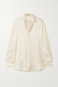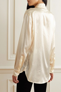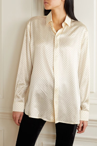 - Ivory silk-satin - Partially concealed button fastenings through front - 100% silk - Specialist clean - Mother-of-pearl: Vietnam - Made in Italy