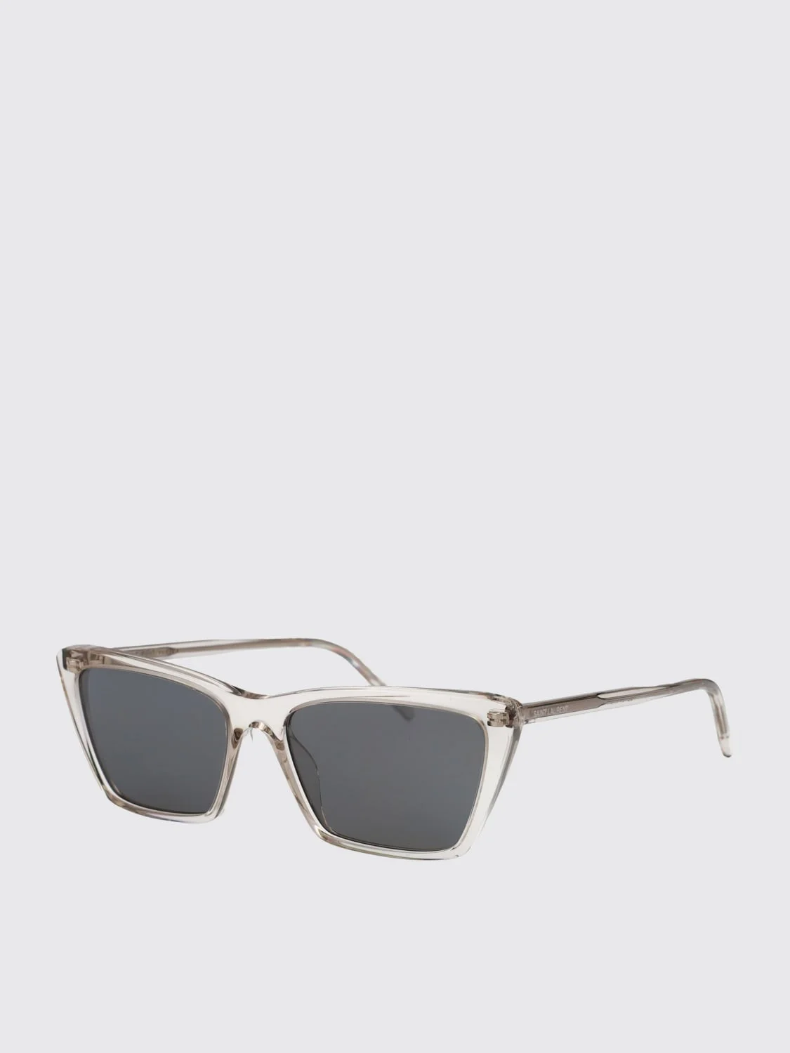 DESCRIPTION - Logo: Lettering - Model: Cat eye - Shape: Rectangular - Measurements: Bridge: 16, Lens width: 54 mm, Temples: 145 - Components: Dark lenses, UVA/UVB lenses - Materials: Acetate - Pattern: Plain-colored DETAILS AND CARE Composition ACETATE SIZE AND FIT Sizes not available Designer code: SL737MICA 004 Giglio Code: G83571 Designer: Saint Laurent Collection: Saint Laurent Woman Category: Accessories Saint Laurent