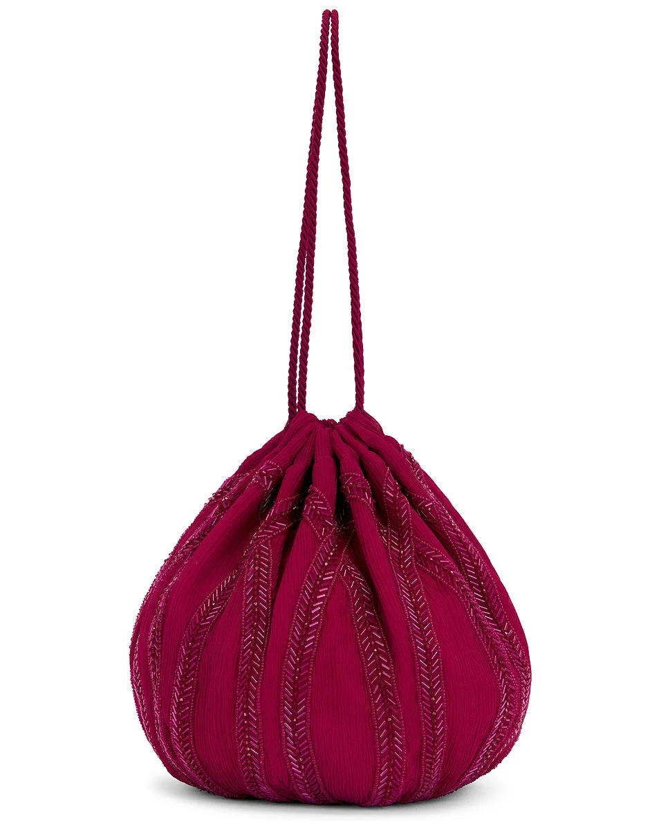 Details - Chiffon exterior with crepe lining - Braided drawstring closure - One main compartment - Embroidered beaded detailing - Measures approx 17 cm W x 27 cm H x 17 cm D - Top handle with a 13 cm drop - This item is not available to ship to Indonesia - Made in Italy - Our Style No. SLAU-WY3168 - Manufacturer Style No. 803269-FAEUJ-5679