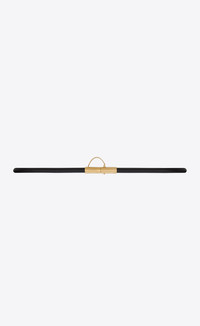 THIN TUBULAR BELT WITH A SAINT LAURENT ENGRAVED CLOSURE FEATURING A LOCKING PIN ON CHAIN. - 95% CALFSKIN LEATHER, 5% BRASS - DIMENSIONS: 1 CM / 0.4 INCHES - GOLD-TONED HARDWARE - LOCKING PIN CLOSURE - STYLE ID 7564691HZ0P1000 - MADE IN ITALY