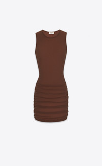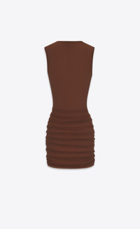 SEMI-SHEER SLEEVELESS MINI DRESS WITH A ROUND NECK AND RUCHED SIDES. THE FABRIC IS DELICATE, PLEASE DO NOT STEAM AND DO NOT IRON. - 100% POLYAMIDE - VISCOSE LINING - ROUND NECK - STYLE ID 779419Y4C072360 - MADE IN ITALY