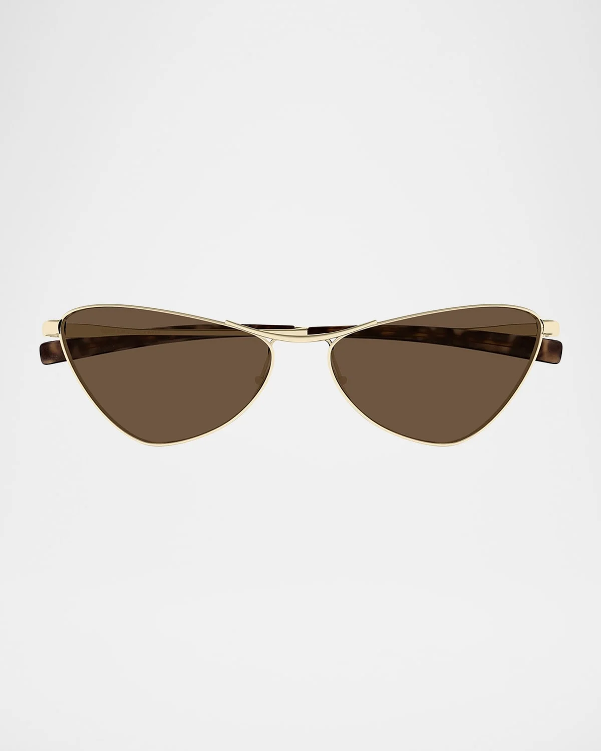 The "SL 830" sunglasses by Saint Laurent exude sophistication with their sleek titanium design and sharp angles. Lens/bridge/temple (in mm): 5614140 Cateye frames Adjustable nose pads Thin, tapered arms Capped acetate temple tips 100% UVA/UVB protection Made in Japan