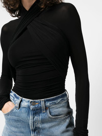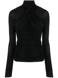 semi-sheer roll-neck T-shirt black stretch-design slim cut semi-sheer construction roll neck extra-long length straight hem Made in France Composition Viscose 95%, Elastane 5% SIZE & FIT Model measurements Height 5 ft 9 in(1.76 m) Bust/Chest 33.07 in(84 cm) Hips 34.64 in(88 cm) Waist 25.59 in(65 cm) FittingInformation Designed for a close fit throughout Made from a midweight stretch fabric, this piece offers elasticity and flexibility when worn This piece fits close in all sizes – take your usual size