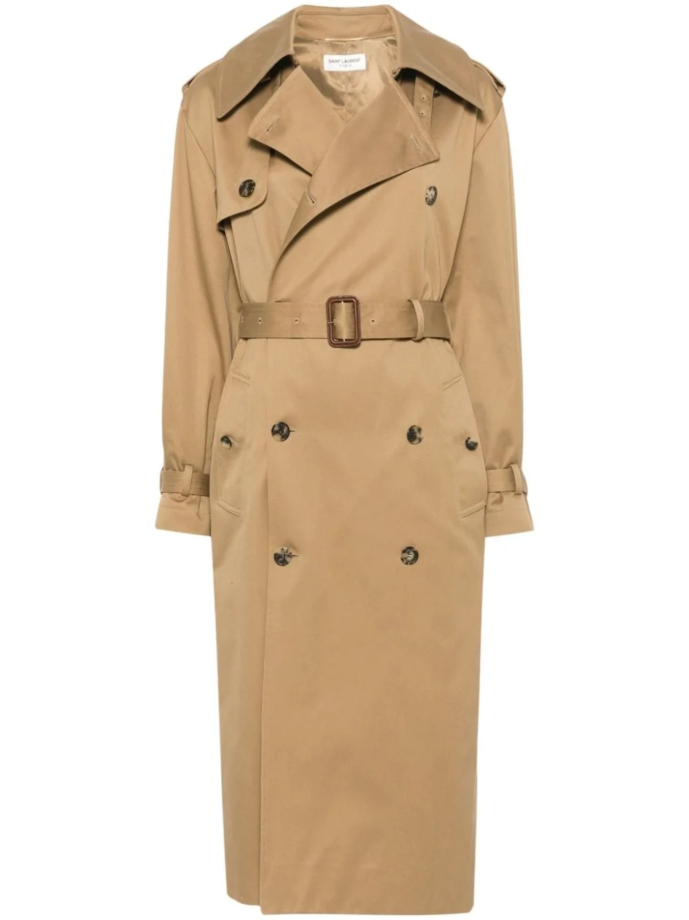 cotton trench coat Highlights - Beige - Cotton - Gabardine weave - Double-breasted button fastening - Oversized pointed collar - Adjustable neck strap - Epaulettes - Long sleeves - Belted cuffs - Storm flap - Two side button-fastening pockets - Belted waist - Central rear vent - Satin lining - Straight hem - Long length Made in Italy Composition Outer: Cotton 100% Lining: Cupro 58%, Cotton 42% SIZE & FIT Model measurements Height 5 ft 10 in(1.78 m) Bust/Chest 33.85 in(86 cm) Hips 36.61 in(93 cm) Waist 26.77 in(68 cm) Measurement SLEEVE LENGTH 23.22 in(59 cm) LENGTH 51.96 in(132 cm) WAIST 29.13 in(74 cm) FittingInformation Designed to be unstructured, offering a loose fit throughout The belt offers adjustability for fitted preferences Made from a midweight non-stretch fabric