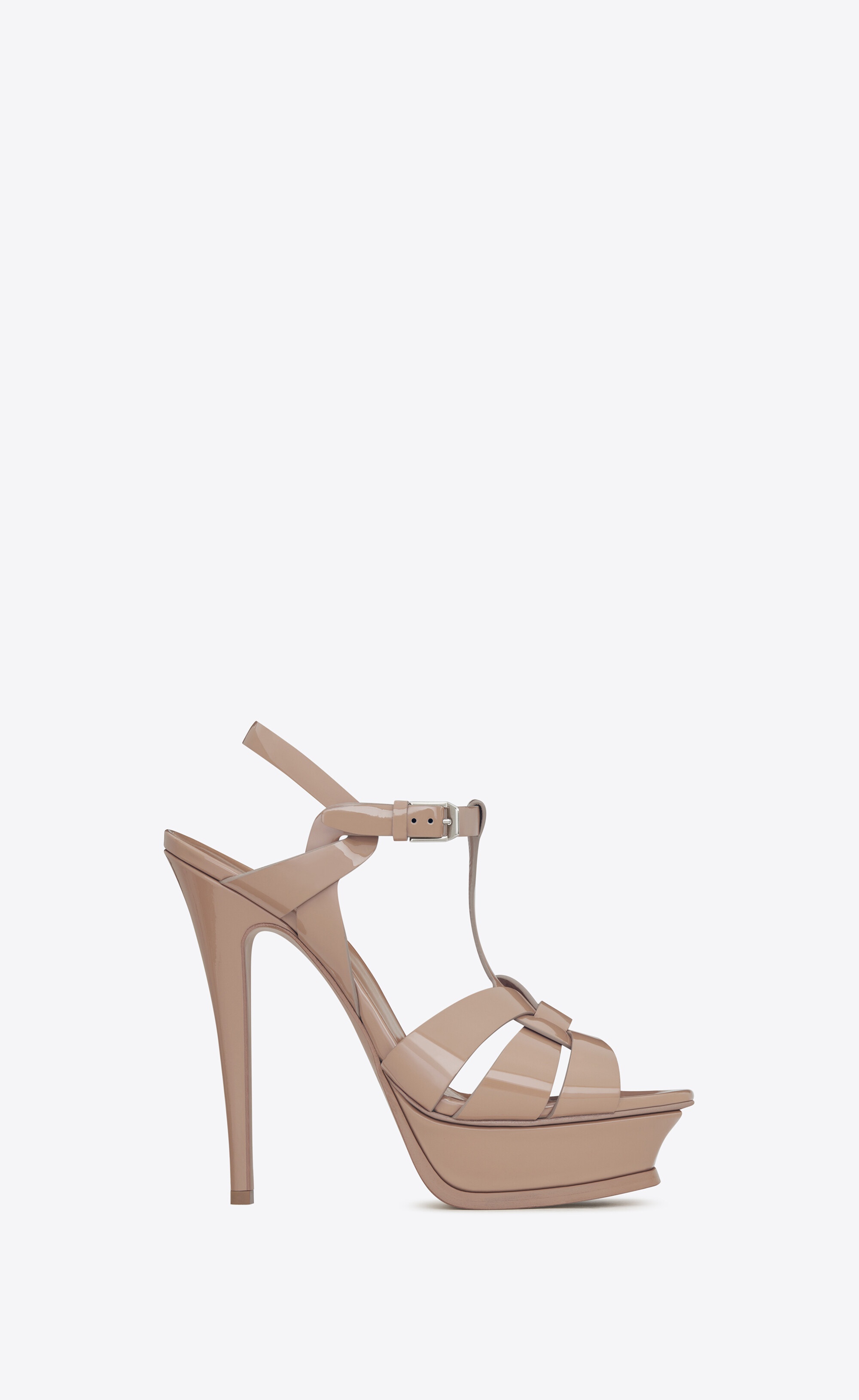 HIGH HEEL STILETTO SANDALS WITH INTERTWINING STRAPS, FEATURING A BEVELED PLATFORM, COVERED HEEL AND ADJUSTABLE ANKLE STRAP ENGRAVED WITH SAINT LAURENT PARIS. TWO HEEL HEIGHTS AVAILABLE. - 100% CALFSKIN LEATHER - TOTAL HEEL HEIGHT: 13,5 CM / 5.3 INCHES - ARCH HEIGHT: 10,5 CM / 4.1 INCHES - PLATFORM HEIGHT: 3 CM / 1.2 INCHES - LEATHER SOLE - ADJUSTABLE ANKLE STRAP - STYLE ID 457752B8I009935 - MADE IN ITALY