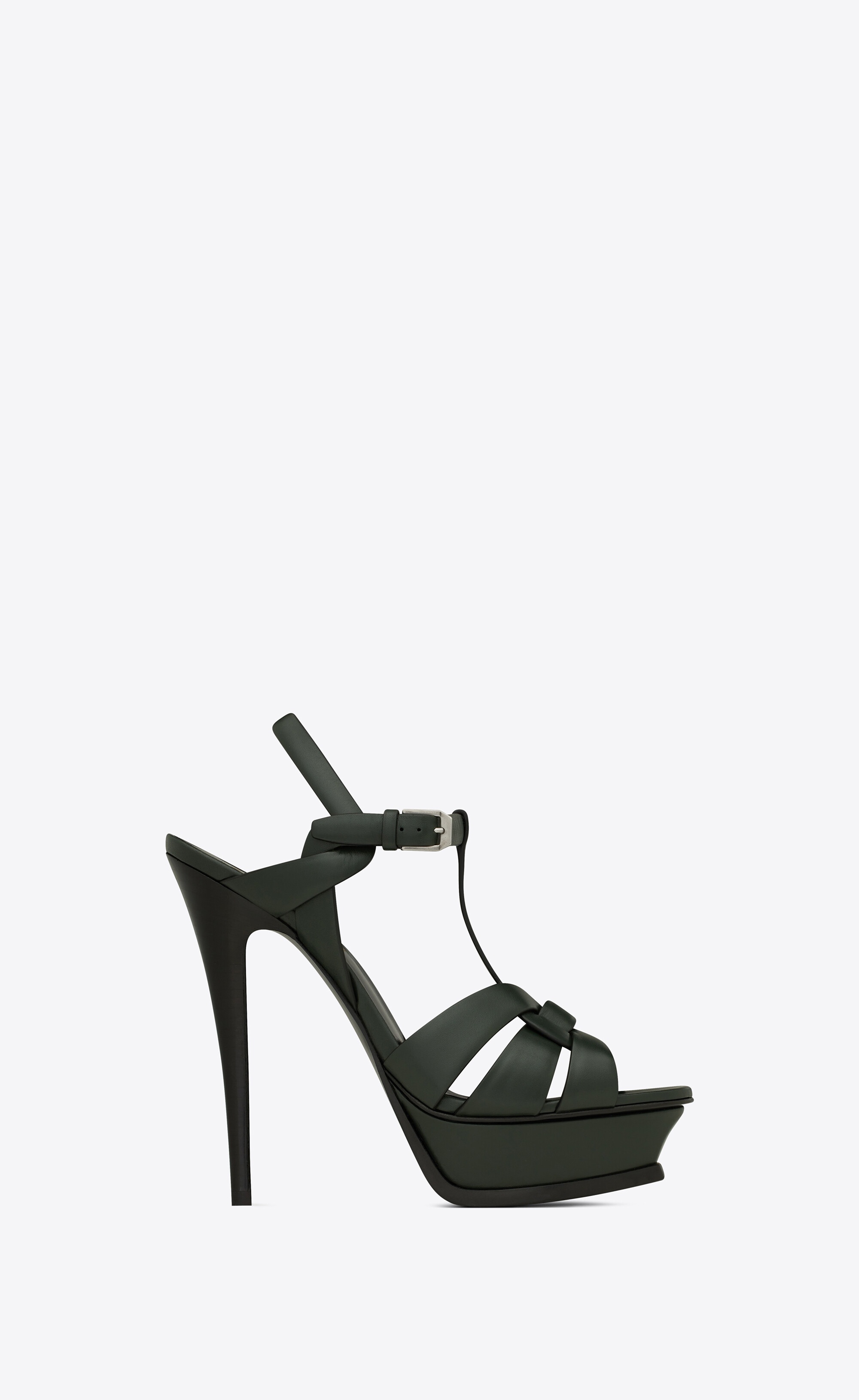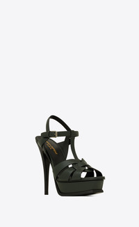HIGH HEEL STILETTO SANDALS WITH INTERTWINING STRAPS, FEATURING A BEVELED PLATFORM, STACKED HEEL AND ADJUSTABLE ANKLE STRAP ENGRAVED WITH SAINT LAURENT PARIS. - 100% CALFSKIN LEATHER - LEATHER SOLE - ADJUSTABLE ANKLE STRAP - TOTAL HEEL HEIGHT: 13.5 CM / 5.3 INCHES - ARCH HEIGHT: 10.5 CM / 4.1 INCHES - PLATFORM HEIGHT: 3 CM / 1.2 INCHES - STYLE ID 5655692WN003045 - MADE IN ITALY