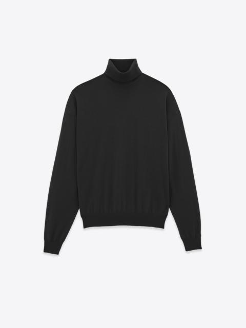 FINE-KNIT, LOOSE-FIT TURTLENECK SWEATER MADE WITH RESPONSIBLE WOOL, FEATURING A CASSANDRE EMBROIDERY ABOVE THE HEM. - 100% VIRGIN WOOL - RESPONSIBLE WOOL - TURTLENECK - RIB-KNIT CUFFS AND HEM - STYLE ID 755010Y76GM1000 - MADE IN ITALY