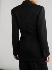 Double-breasted twill-trimmed grain de poudre wool blazer Black