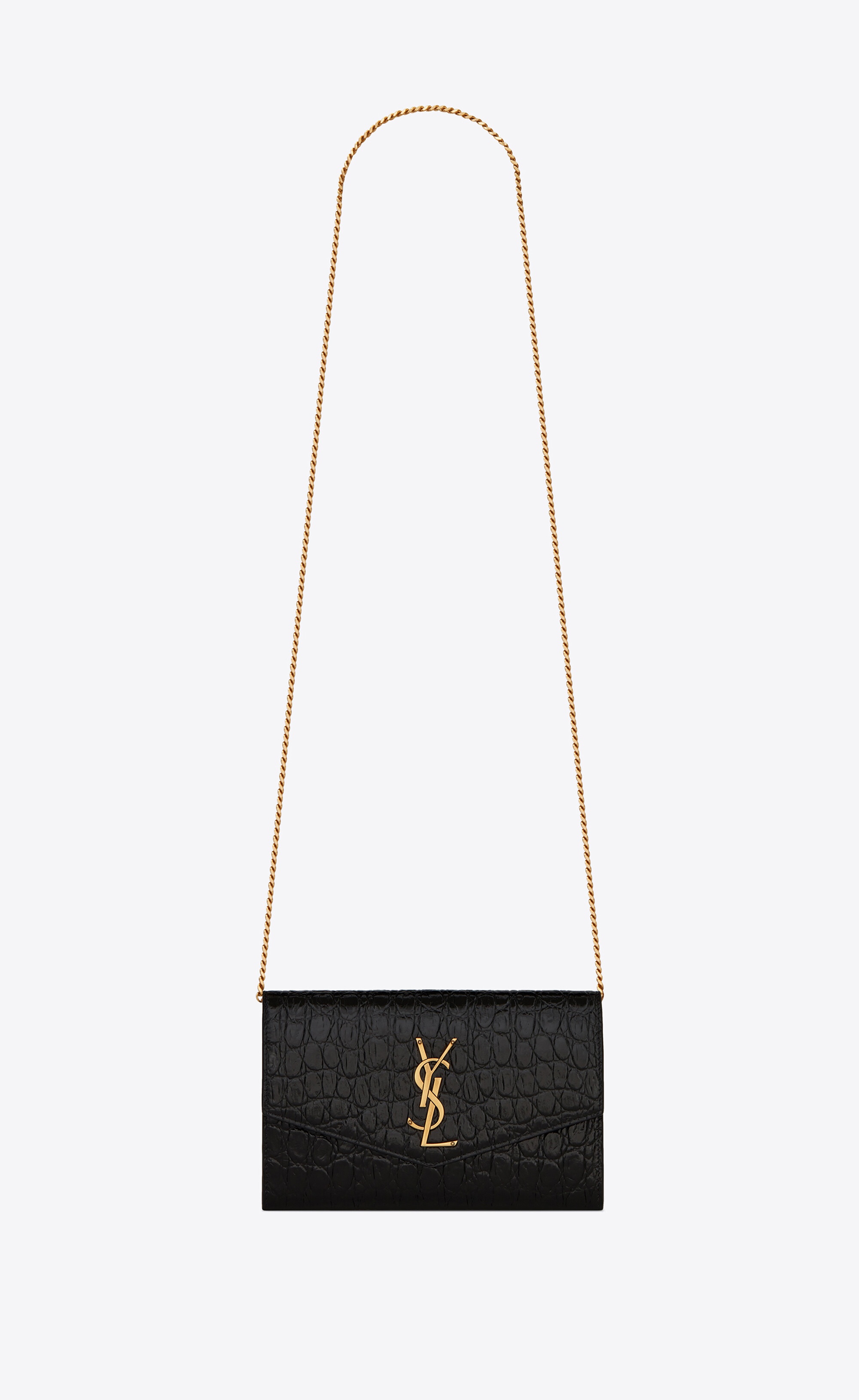 MINI ENVELOPE BAG DECORATED WITH METAL YSL INITIALS, FEATURING A REMOVABLE CHAIN STRAP FOR SHOULDER OR HAND CARRY AS A CLUTCH. A FRAGMENTS CARD CASE WITH THREE CARD SLOTS IS INCLUDED. - 100% CALFSKIN LEATHER - DIMENSIONS: 19 X 12 X 3 CM - BRONZE-TONED METAL HARDWARE - SNAP-BUTTON CLOSURE - INTERIOR: ONE MAIN COMPARTMENT - ONE FLAT POCKET - ONE REMOVABLE FRAGMENTS CARD CASE WITH 3 CARD SLOTS - SHOULDER STRAP DROP: 48 CM - STYLE ID 809495117 - MADE IN ITALY