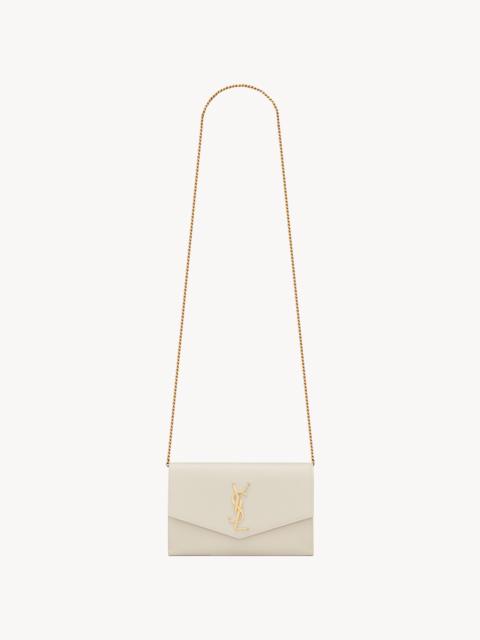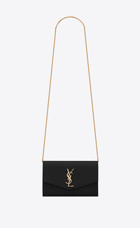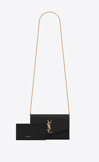 MINI ENVELOPE BAG DECORATED WITH METAL YSL INITIALS, FEATURING A REMOVABLE CHAIN STRAP FOR SHOULDER OR HAND CARRY AS A CLUTCH. A FRAGMENTS CARD CASE WITH THREE CARD SLOTS IS INCLUDED. - 100% CALFSKIN LEATHER - DIMENSIONS: 19 X 12 X 3 CM / 7.4 X 4.7 X 1.1 INCHES - GOLD-TONED METAL HARDWARE - SNAP-BUTTON CLOSURE - INTERIOR: 1 FLAT POCKET - 1 REMOVABLE FRAGMENT WITH 3 CARD SLOTS - SHOULDER STRAP DROP: 48 CM - STYLE ID 809158204 - MADE IN ITALY