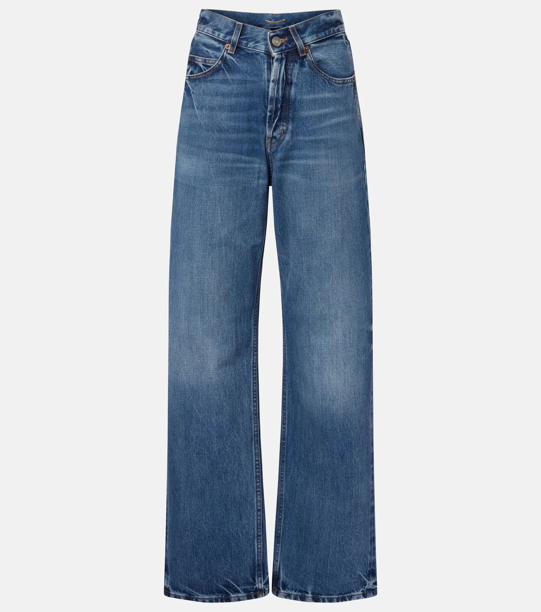 Add an edgy flair to your everyday ensembles with the V-Waist jeans from Saint Laurent. Defined by a flattering V-cut waistline, this pair features a classic 5-pocket construction and a wide-leg silhouette. Product Details - Material: 100% cotton - Care instructions: machine wash at 30 degrees - Made in Italy - Designer color name: 50S Blue - Item color: blue - Details: 100% calf leather - Contains non-textile parts of animal origin - Closure: concealed button placket - Pockets: five pockets - Belt loops - Item number: P01078581 Size & Fit - True to size - Non-stretchy fabric - Wide-leg - High-rise - The model seen in the picture is 178cm-5'10" and wearing a size 26