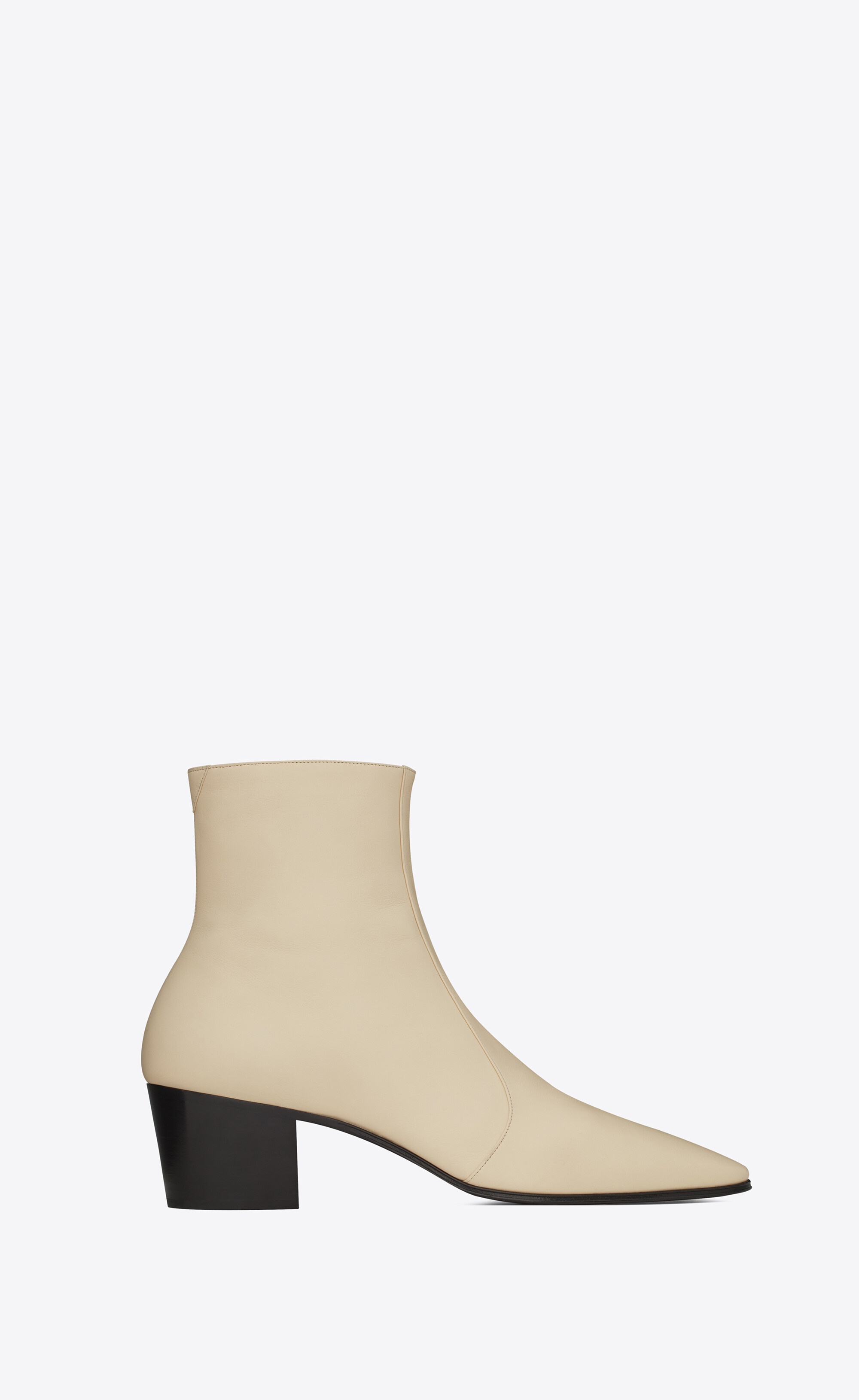 ZIPPED ANKLE BOOTIES WITH A ROUNDED POINTED TOE, A STACKED HEEL AND FRONT STITCHES. - 100% CALFSKIN LEATHER - LEATHER SOLE - TOTAL HEEL HEIGHT: 6 CM / 2.4 INCHES - STYLE ID 6691771Y8001543 - MADE IN ITALY