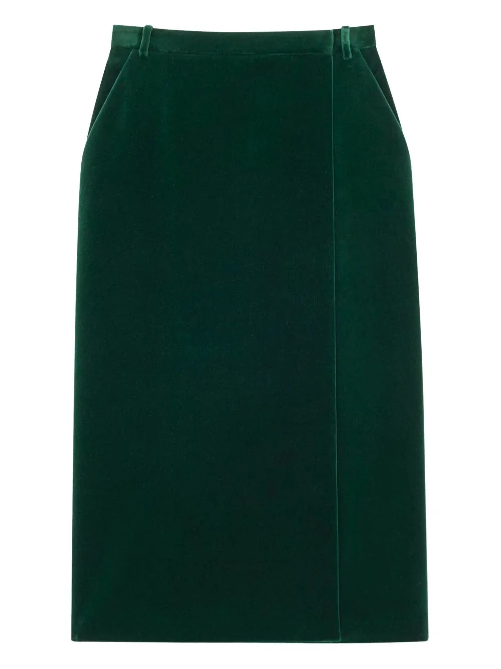 velvet midi skirt Highlights - Emerald green - Velvet texture - Side slit pockets - Straight hem - High waist Made in Italy Composition Cotton 100%