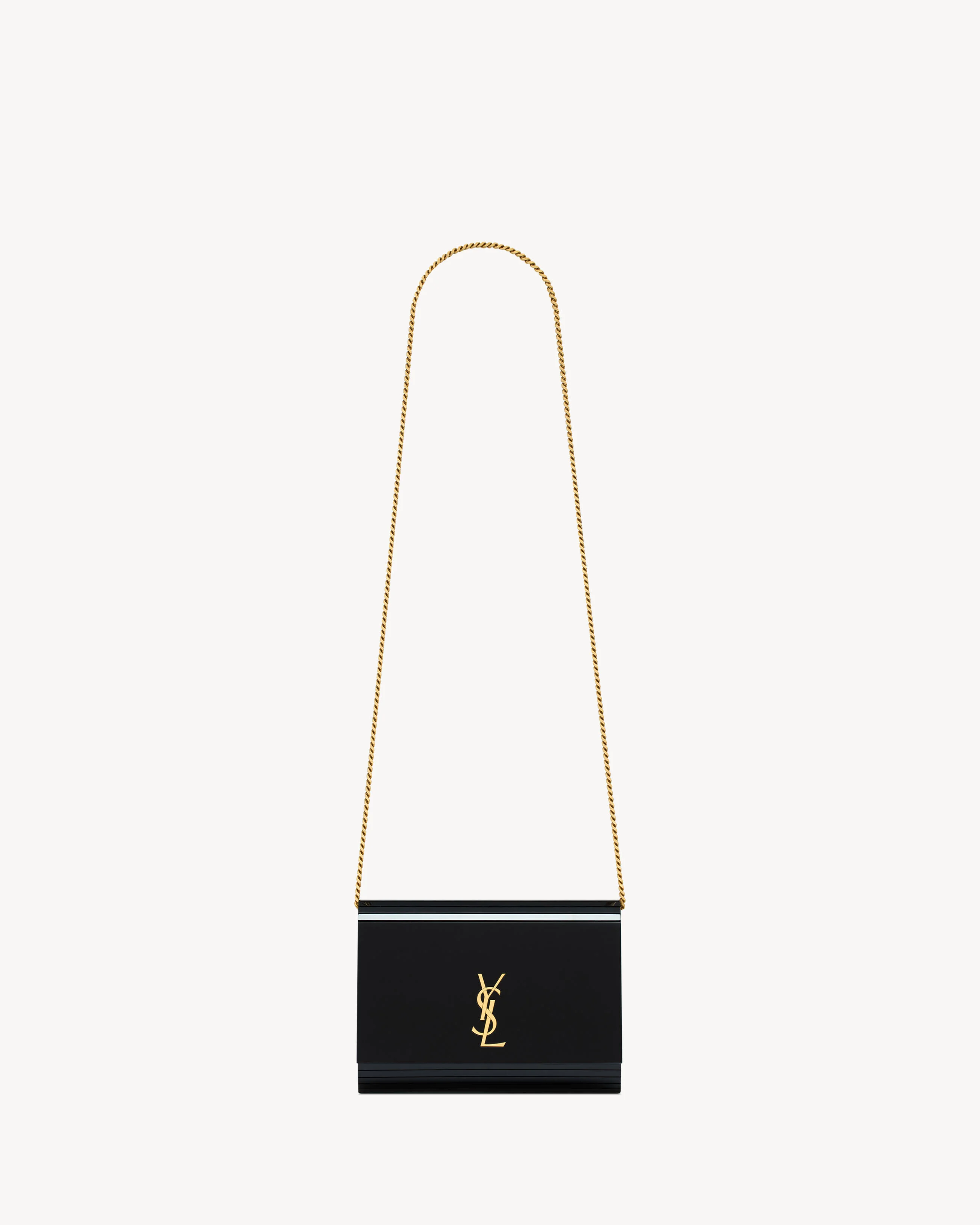 MINAUDIERE WITH A FRONT FLAP DECORATED WITH THE ICONIC CASSANDRE. THIS VERSATILE EVENING BAG FEATURES A CURB-CHAIN STRAP FOR SHOULDER CARRY. - LAMBSKIN LINING - BRONZE-TONED HARDWARE - MAGNETIC SNAP CLOSURE - ONE FLAT POCKET - DIMENSIONS: 18.5 X 13.5 X 4 CM / 18.5" X 5.3" X 1.6" - STRAP DROP: 45.5 CM / 17.9" - PLEXIGLAS, BRASS - STYLE ID 813875JA70W1000 - MADE IN ITALY