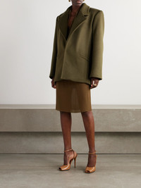 You can't go wrong by investing in SAINT LAURENT's impeccable tailoring - it's timeless, sophisticated and designed to last. This coat has been made in Italy from wool in an oversized shape with padded shoulders and a martingale-inspired strap at the reverse. Size & Fit - Fits true to size, take your normal size - Designed for a boxy fit, cut to be worn loose - Internal shoulder pads - Weighted, non-stretchy fabric - Model is 177cm/ 5'10" and is wearing a FR 36 Model measurements: - Bust: 79cm/ 31" - Waist: 61cm/ 24" - Hip: 89cm/ 35" Details & Care - Olive wool - Concealed button fastenings through front - 100% wool; lining: 100% silk - Dry clean