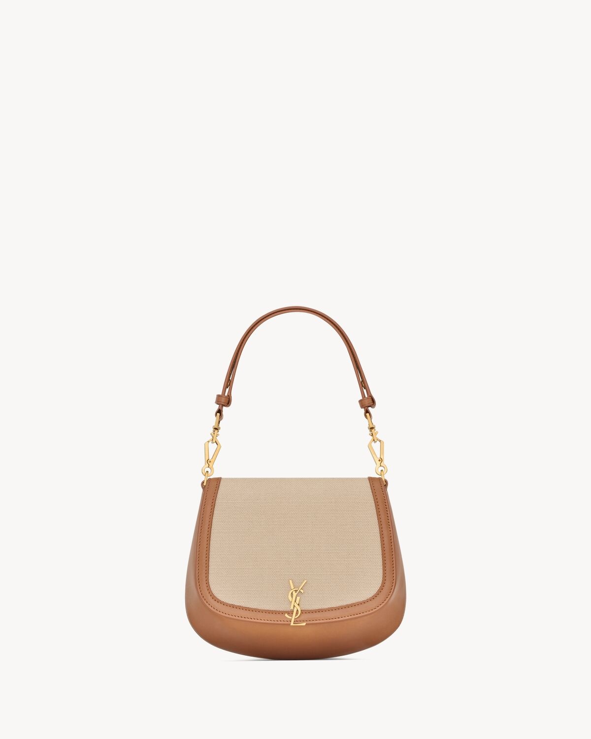 TOP-HANDLE BAG IN CANVAS AND VEGETABLE-TANNED LEATHER, DECORATED WITH THE CASSANDRE. THIS MODERN AND STRUCTURED BAG FEATURES AN ADJUSTABLE HANDLE FOR HAND OR SHOULDER CARRY. - SUEDE LINING - BRONZE-TONED HARDWARE - MAGNETIC SNAP CLOSURE - ONE FLAT POCKET - DIMENSIONS: 17.5 X 21 X 8 CM / 6.9" X 8.3" X 3.1" - HANDLE DROP: 14–23.5 CM / 5.5–9.3" - CALFSKIN, COTTON, BRASS - STYLE ID 818896FACW69856 - MADE IN ITALY