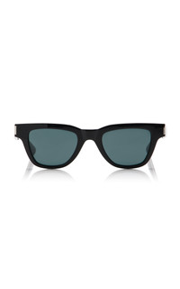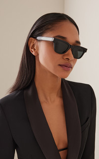 As bold and timeless as its ready-to-wear, Saint Laurent's sunglasses have been seen on the world's most stylish, like Hailey Bieber and Zoe Kravitz. These Wellington sunglasses have acetate and resin frames with nylon lenses and an exposed metal wire. PRODUCT DETAILS - Composition: recycled acetate - 100% UVA/UVB protection - Made in Japan SIZE & FIT - Lens: 47mm/ 1.9" - Bridge: 21mm/ 0.8" - Temple: 145mm/ 5.7"